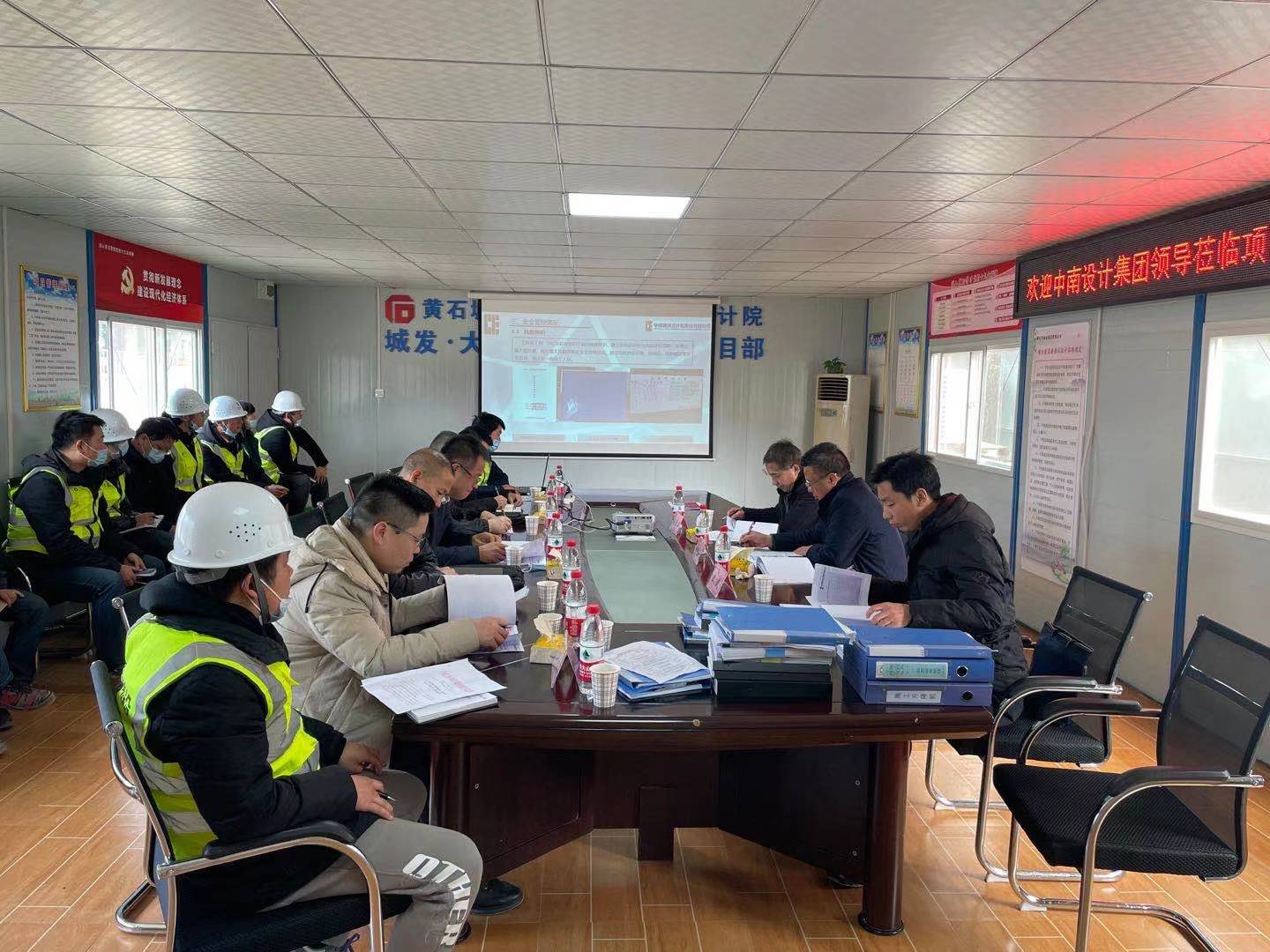 檢查組一行對施工現(xiàn)場實地查看,對現(xiàn)場安全生產(chǎn)、技術質量等情況進行了檢查,聽取了項目負責人對項目工程概況、施工進度、安全管理等情況的匯報。隨后在會議室召開座談會。