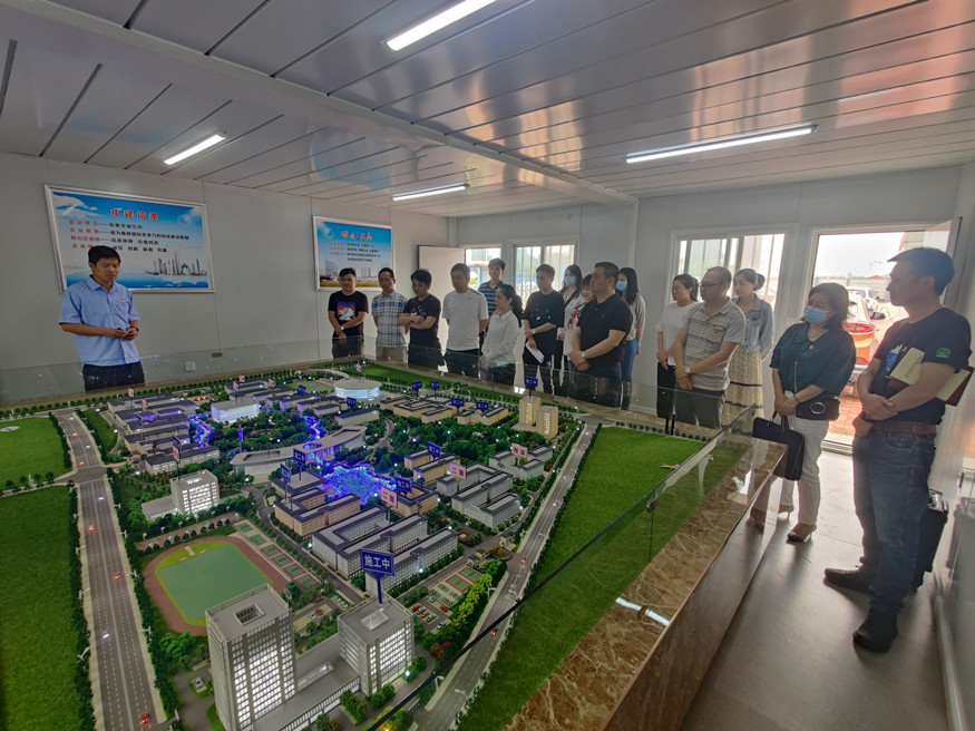 活動前,建設(shè)公司一行在中建七局湖北工程職院新校區(qū)項(xiàng)目黨支部書記李曉龍的帶領(lǐng)下觀摩了項(xiàng)目沙盤室,詳細(xì)了解了湖北工程職院新校區(qū)項(xiàng)目進(jìn)展情況。